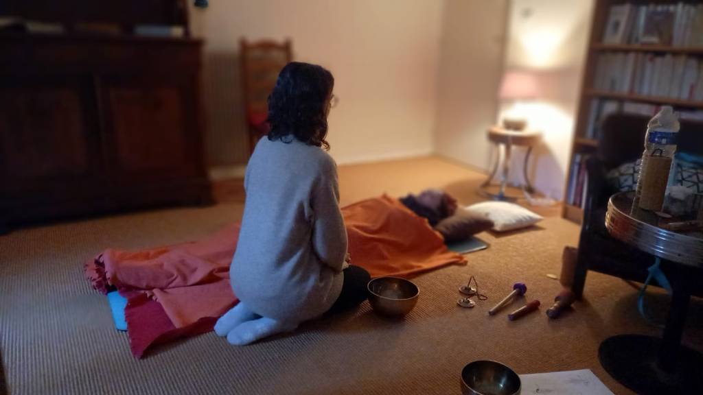 Protocoles d’accompagnement de sonothérapie, par les bols tibétains, les diapasons, la voix et autres instruments.